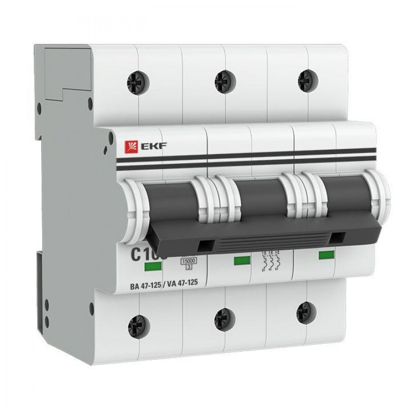 Выключатель автоматический модульный 3п C 100А 15кА ВА 47-125 PROxima EKF mcb47125-3-100C