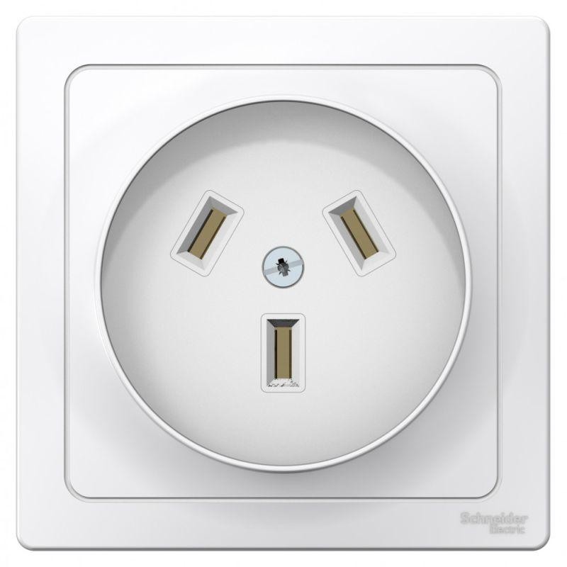 Розетка Schneider Electric BLANCA (белый, скрытой установки) силовая с заземлением для применения в сетях до 250В, на ток до 32А. Монтаж выполняется с помощью монтажных лапок и винта. Поверхность имеет глянцевое покрытие. Размеры розетки: 100*100*47 мм.
