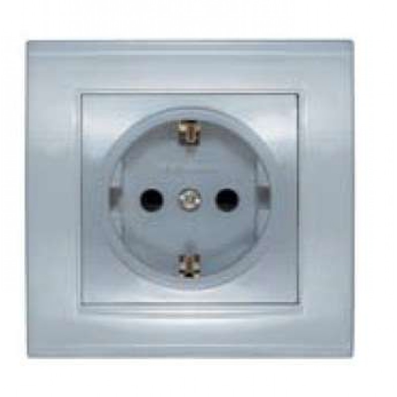 Розетка 1-м СП Бриллиант 16А IP20 с заземл. защ. шторки серебр. UNIVersal 7949889