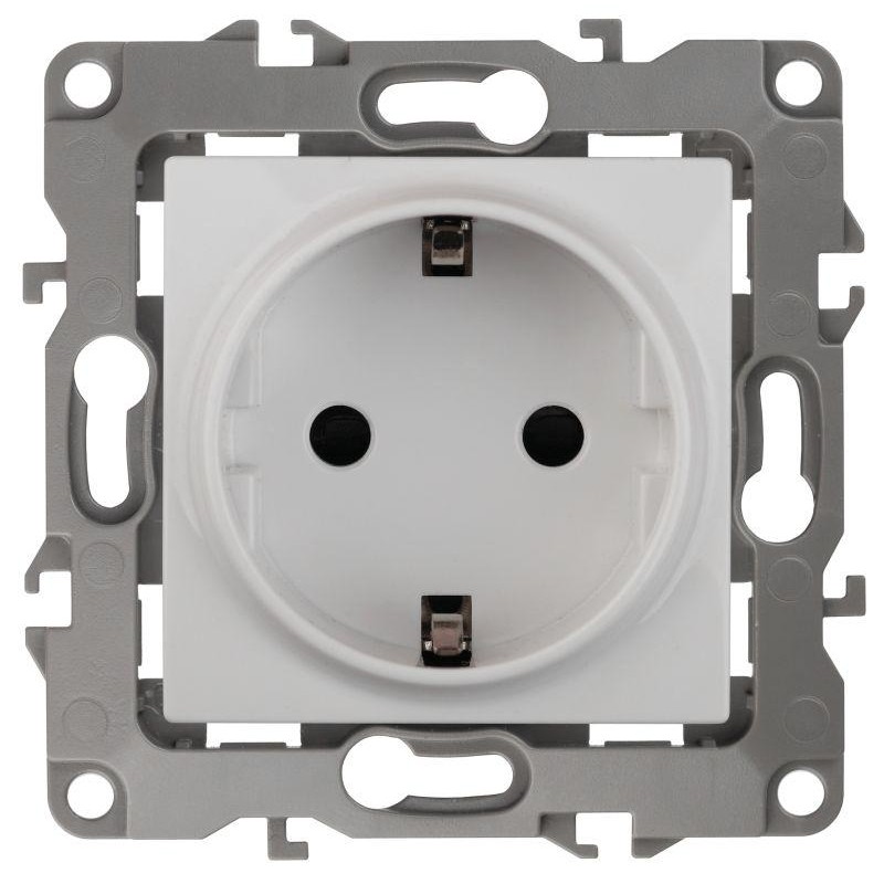 Розетка 1-м СП Эра12 12-2102-01 16А IP20 16AX 250В 2P+E Schuko защ. шторки механизм бел. Эра Б0014687