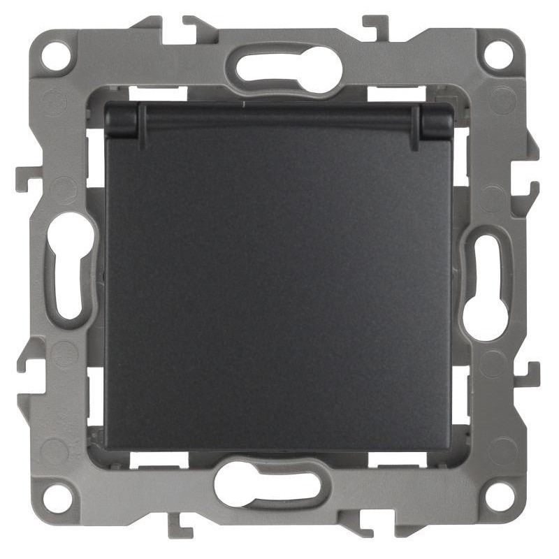 Розетка 1-м СП Эра12 12-2103-05 16А IP20 16AX 250В 2P+E Schuko защ. шторки с крышкой механизм антрацит Эра Б0014697