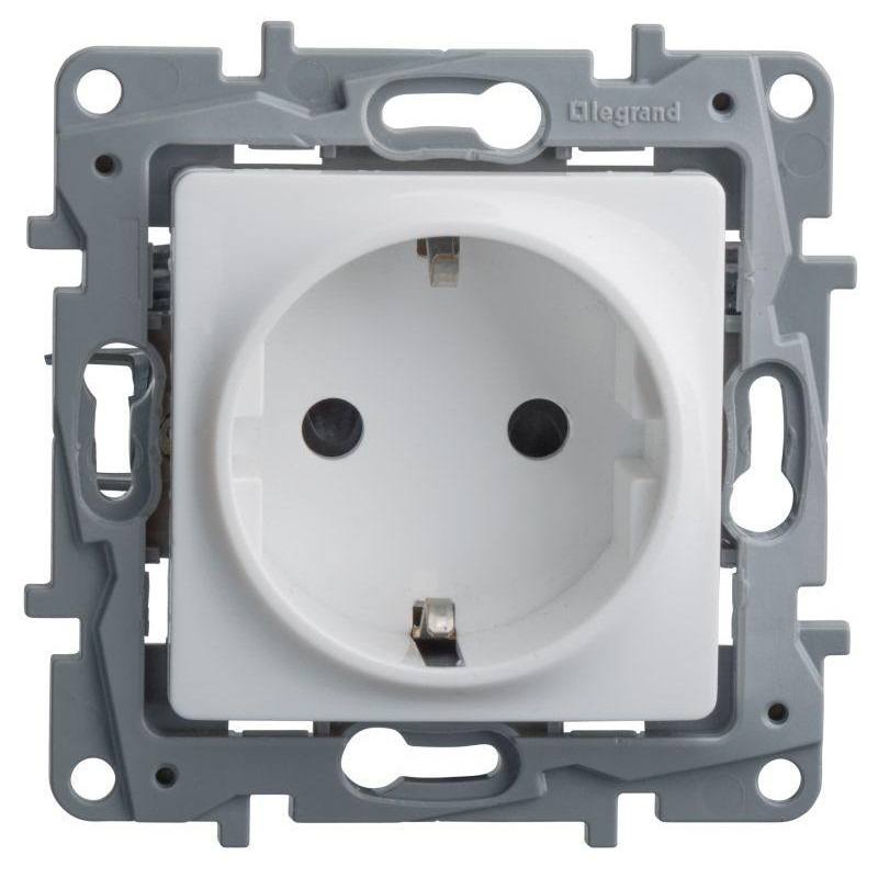 Механизм розетки 1-м СП ETIKA с заземл. винт бел. Leg 672221 – элемент электроустановочного оборудования серии ETIKA.
