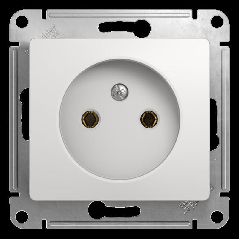 Механизм Schneider Electric Glossa (цвет белый) розетки одинарной без заземления и без шторок подходит для сетей 250 В, на ток 16 А.