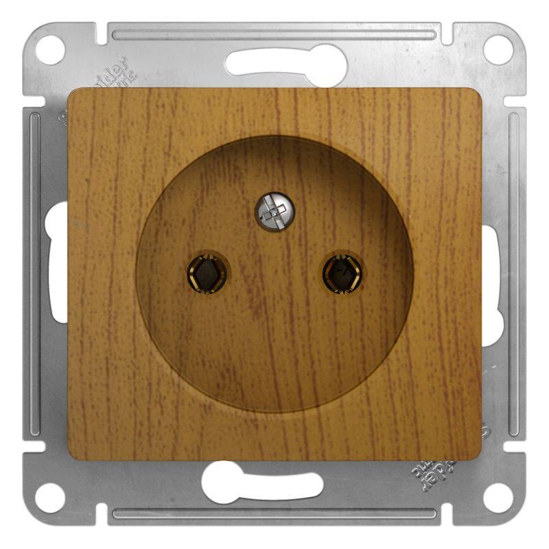 Механизм Schneider Electric Glossa (цвет дерево дуб) розетки одинарной без заземления и без шторок подходит для сетей 250 В, на ток 16 А.