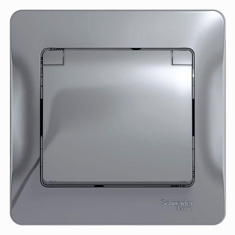 Розетка Schneider Electric Glossa (в сборе, цвет алюминий) одинарная с заземлением, шторками и крышкой подходит для сетей 250 В, на ток 16 А.