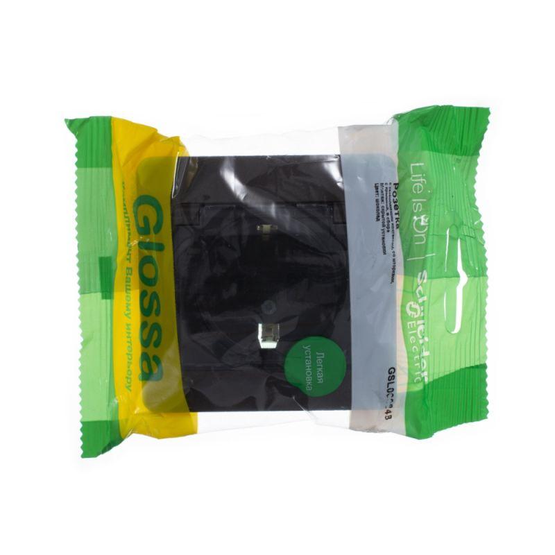 Розетка Schneider Electric Glossa (в сборе, цвет алюминий) одинарная с заземлением, шторками и крышкой подходит для сетей 250 В, на ток 16 А.