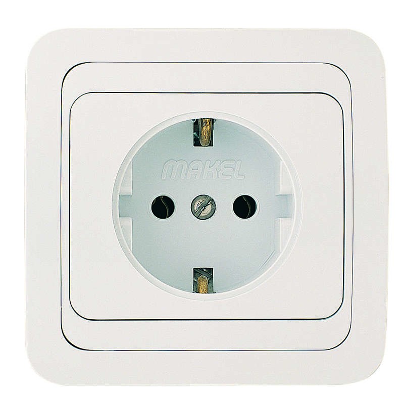 Розетка 1-м СП Mimoza 16А IP20 с заземл. пластик. основ. бел./бел. Makel 12028