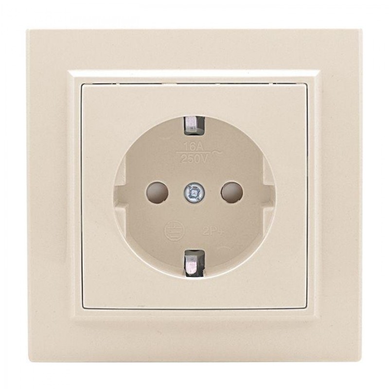 Розетка 1-м СП Минск 16А IP20 с заземл. защ. шторки беж. EKF ERR16-028-200
