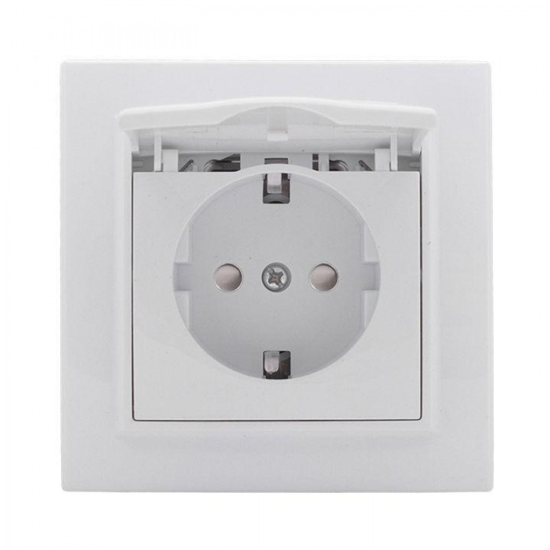 Розетка 1-м СП Минск 16А IP20 с заземл. защ. шторки с крышкой бел. Basic EKF ERR16-029-100