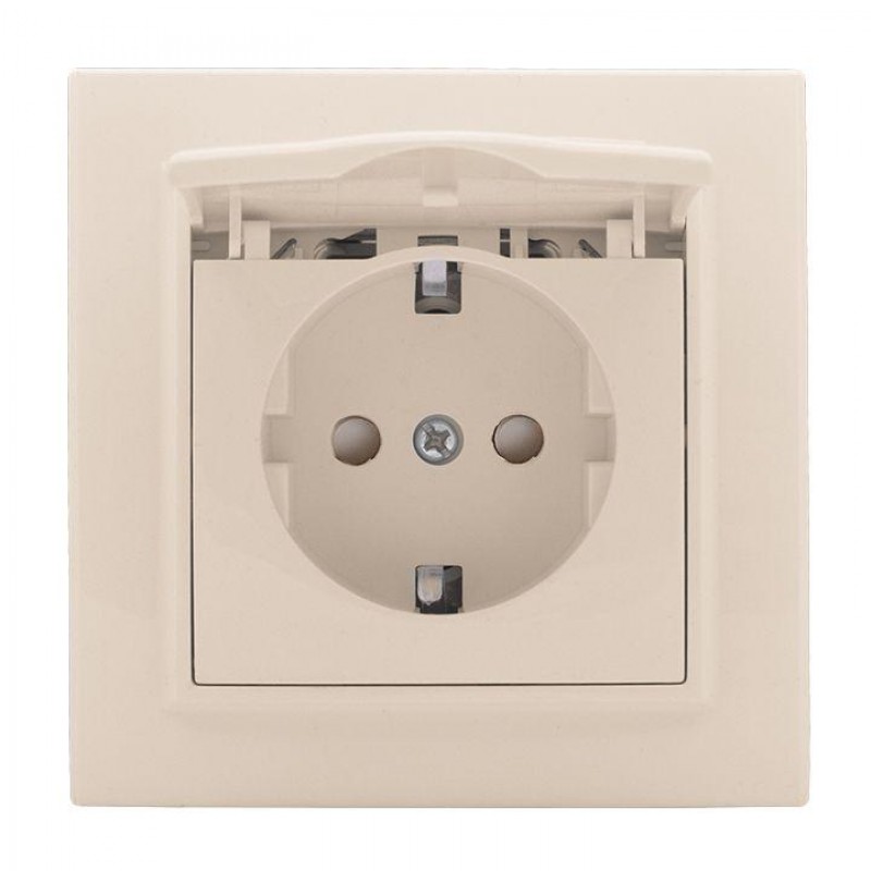 Розетка 1-м СП Минск 16А IP20 с заземл. защ. шторки с крышкой беж. EKF ERR16-029-200