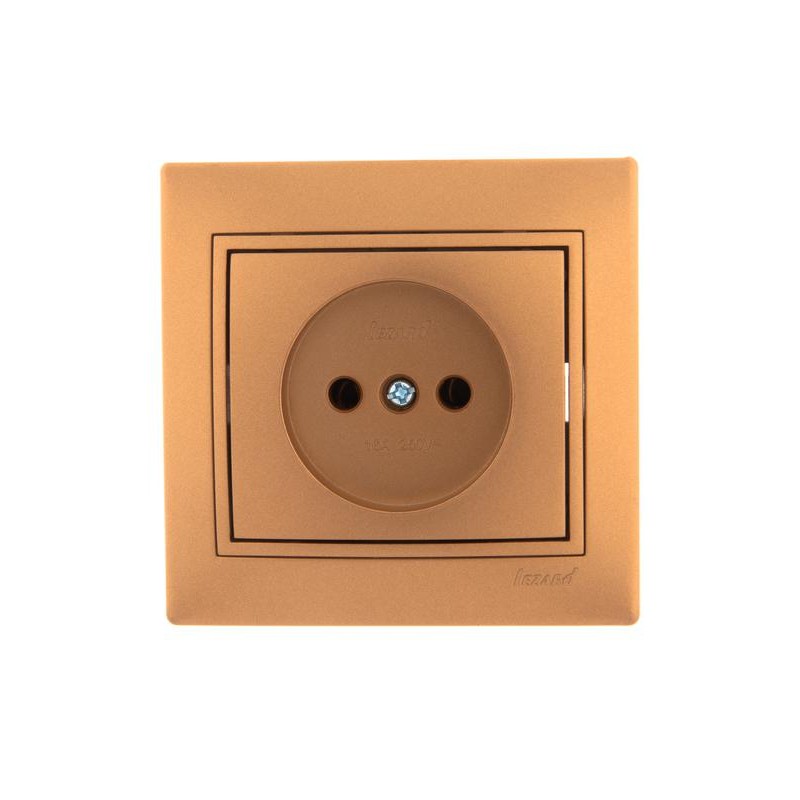 Розетка 1-м СП Mira 16А IP20 без заземл. со вставкой керамика зол. метал. LEZARD 701-1313-121