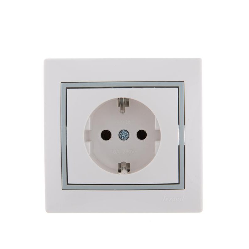 Розетка 1-м СП Mira 16А IP20 с заземл. с сер. вставкой керамика бел. LEZARD 701-0215-122