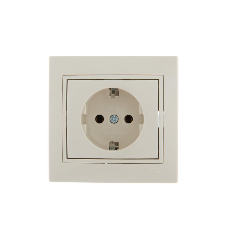 Розетка 1-м СП Mira 16А IP20 с заземл. со вставкой керамика крем. LEZARD 701-0303-122