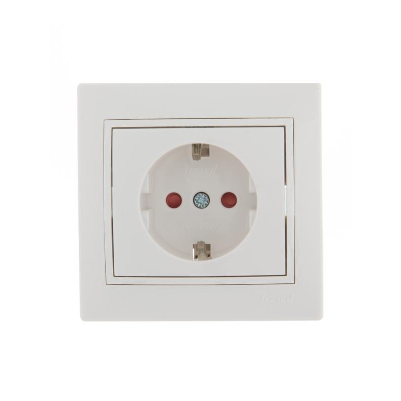 Розетка 1-м СП Mira 16А IP20 с заземл. защ. шторки с бел. вставкой керамика бел. LEZARD 701-0202-124
