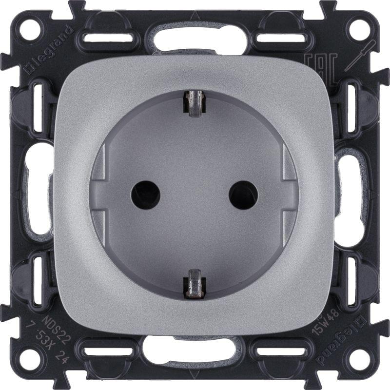 Розетка 1-м СП Valena Allure 16А IP20 250В 2P+E винт. клеммы с лицев. панелью механизм алюм. Leg 753924