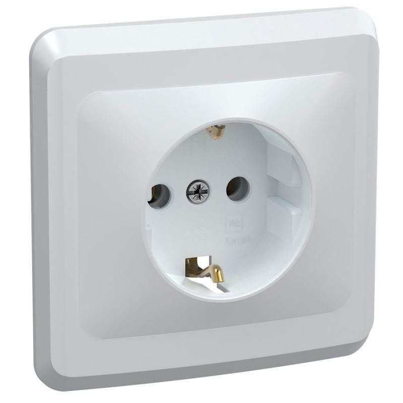 Розетка 1-м СП Вега РС10-3-ВБ с заземл. контактом без защ. штор 16А бел. IEK ERV11-K01-16-DM