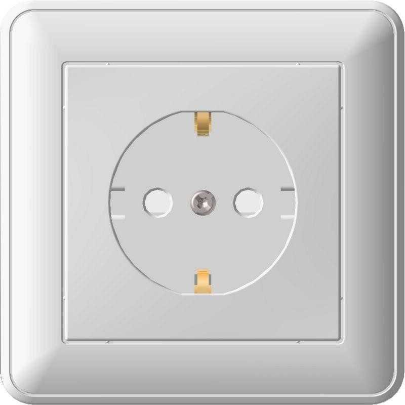 Розетка Schneider Electric W59 (в сборе, цвет белый) с заземлением и шторками подходит для сетей до 250 В, на ток 16 А.