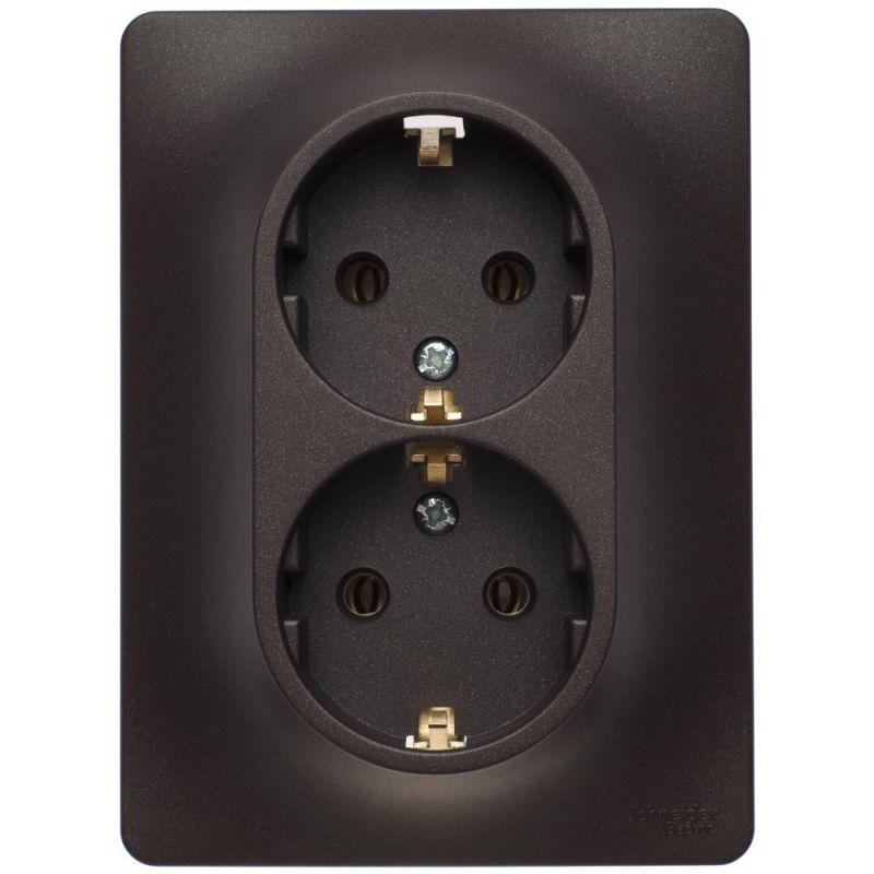 Розетка двойная Schneider Electric Glossa (в сборе, цвет шоколад) с заземлением, без шторок подходит для сетей 250 В, на ток 16 А.