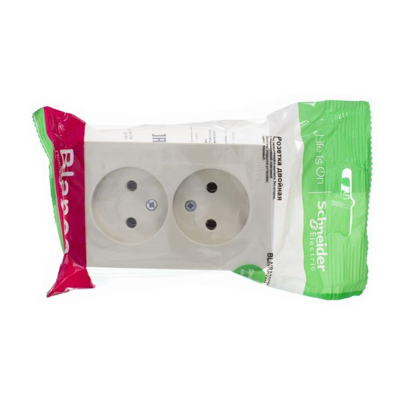 Розетка Schneider Electric BLANCA (открытой установки, цвет бежевый) двухместная без заземления и шторок, с изолирующей пластиной подходит для сетей 250 В, на ток 16 А.