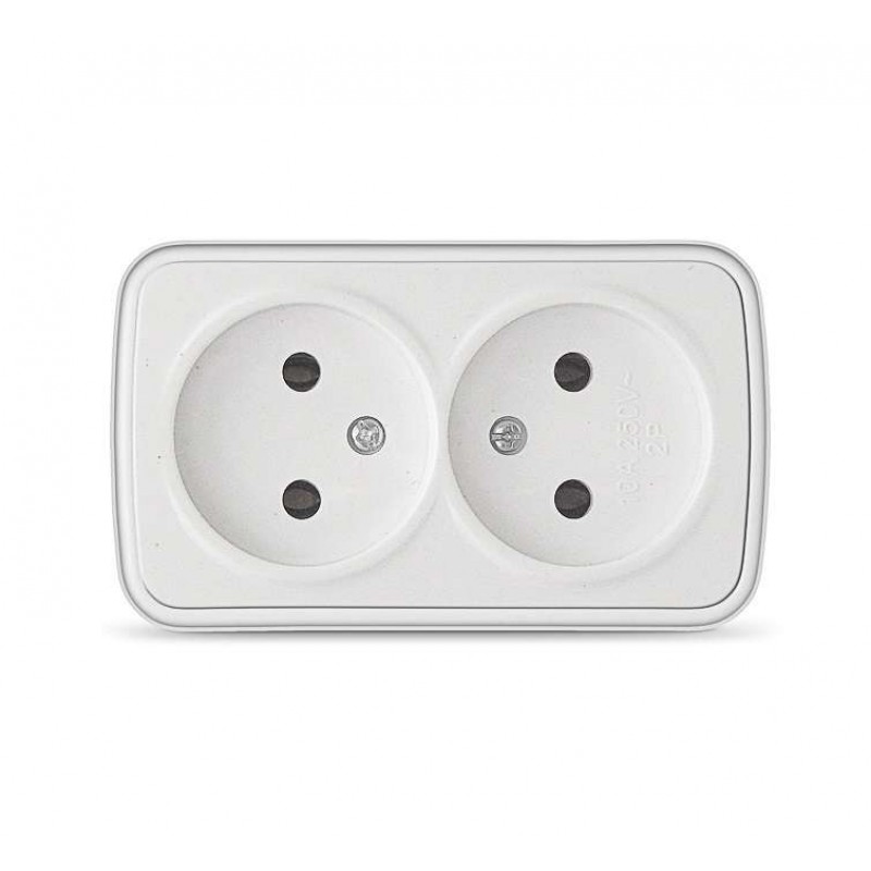 Розетка 2-м ОП Электра 16А IP20 без заземл. бел. Союз 0024