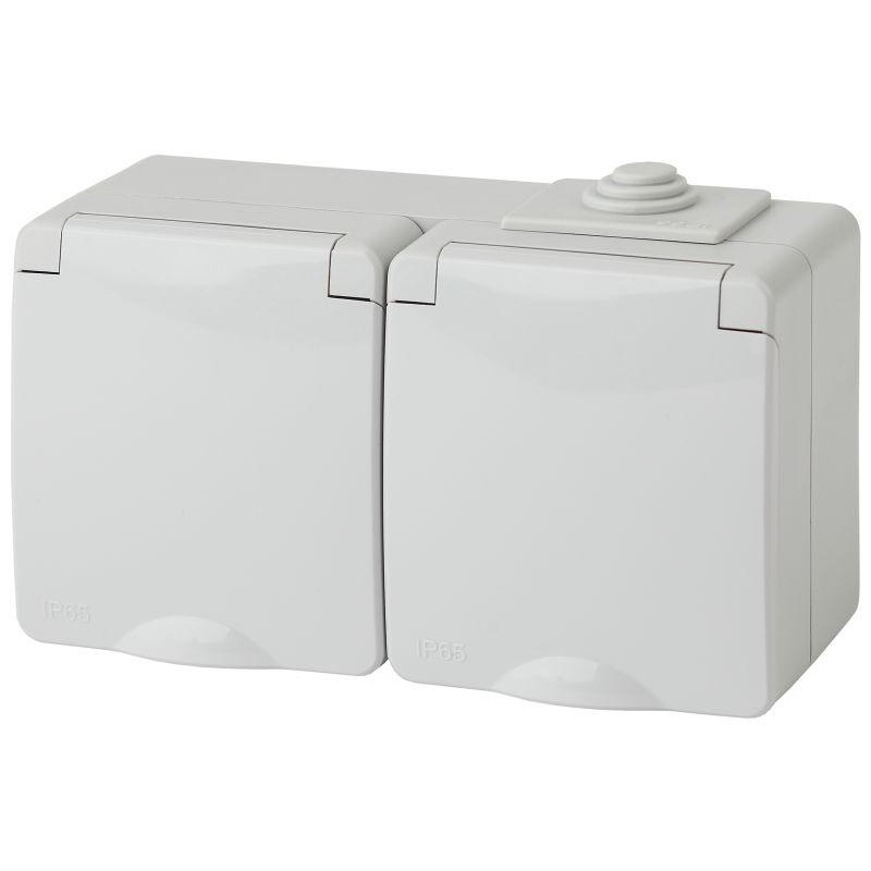Розетка 2-м ОП Эра Эксперт 11-2603-03 16А IP65 горизонт. 250В 2х2P+E сер. Эра Б0035991