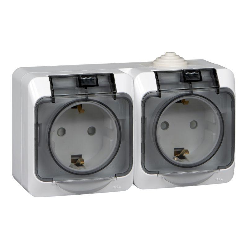 Розетка 2-м ОП Этюд 16А IP44 250В с заземл. защ. шторки бел. SchE PA16-244B