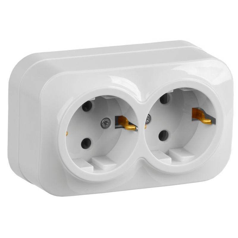 Розетка 2-м ОП GLORY РС22-3-ХБ 16А с заземл. бел. IEK ERH21-K01-16