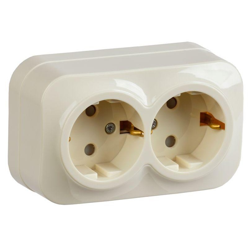 Розетка 2-м ОП GLORY РСш22-3-ХК 16А с заземл. защ. шторки крем. IEK ERH24-K33-16
