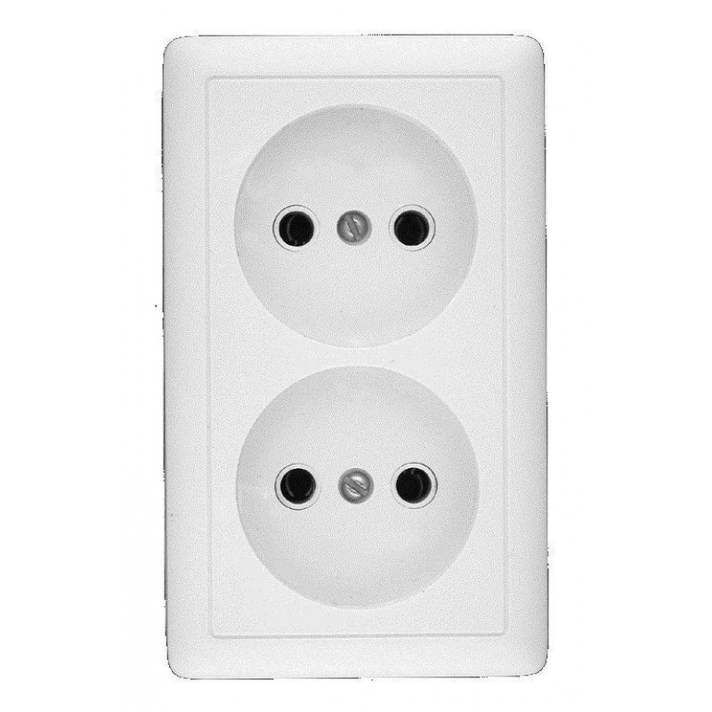 Розетка Schneider Electric ХИТ (открытой установки, цвет белый) двойная без заземления и без шторок предназначена для сетей до 250 В на ток до 16 А.
