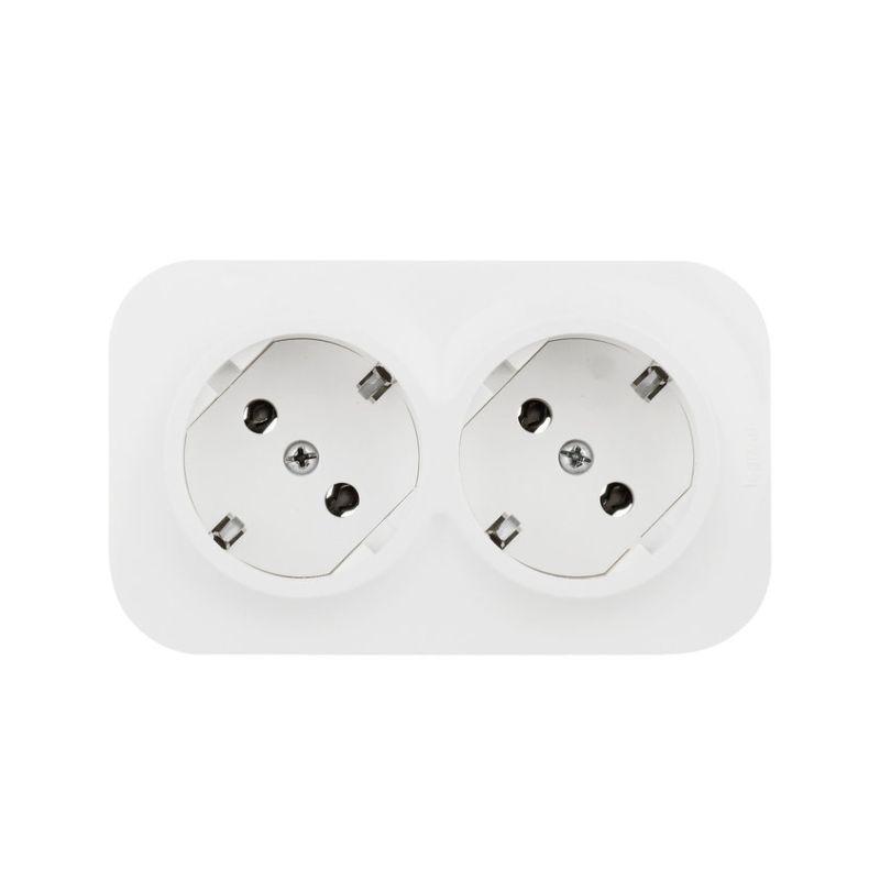 Розетка 2-м ОП Quteo 16А IP20 250В 2х2P+E с заземл. без защ. шторок бел. Leg 782233