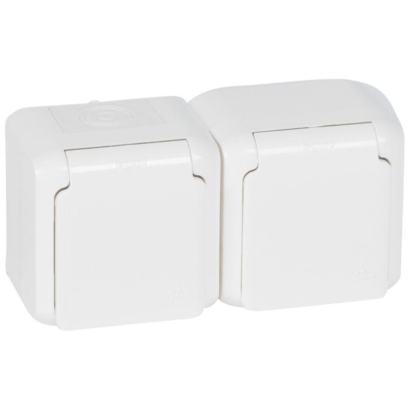 Розетка 2-м ОП Quteo 16А IP44 250В 2х2P+E с заземл. защ. шторки с крышкой бел. Leg 782323