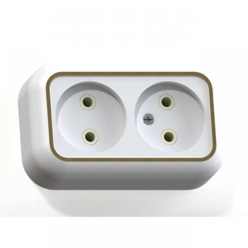 Розетка 2-м ОП Валентина РА10-382 10А IP20 бел./зол. Кунцево 5417