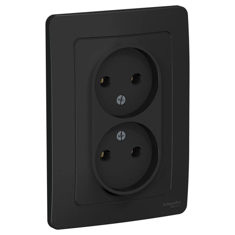 Розетка 2-м СП Blanca 16А IP20 250В без заземл. без защ. шторок антрацит SchE BLNRS000026