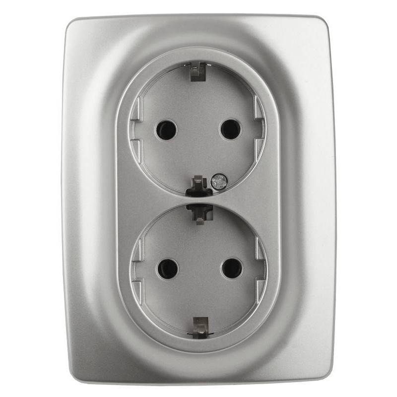 Розетка 2-м СП Эра12 12-2106-03 16А IP20 16AX 250В 2х2P+E Schuko алюм. Эра Б0031230