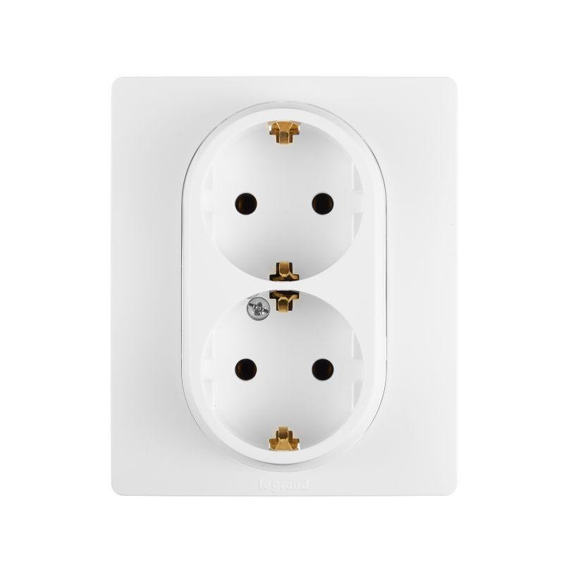 Розетка 2-м СП Etika 16А IP20 250В 2P+E с заземл. немецк. стандарт винт. клеммы в сборе бел. Leg 672223