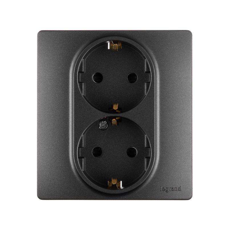 Розетка 2-м СП Etika 16А IP31 250В 2х2P+E с заземл. защ. шторки немецк. стандарт безвинт. клеммы антрацит Leg 672633