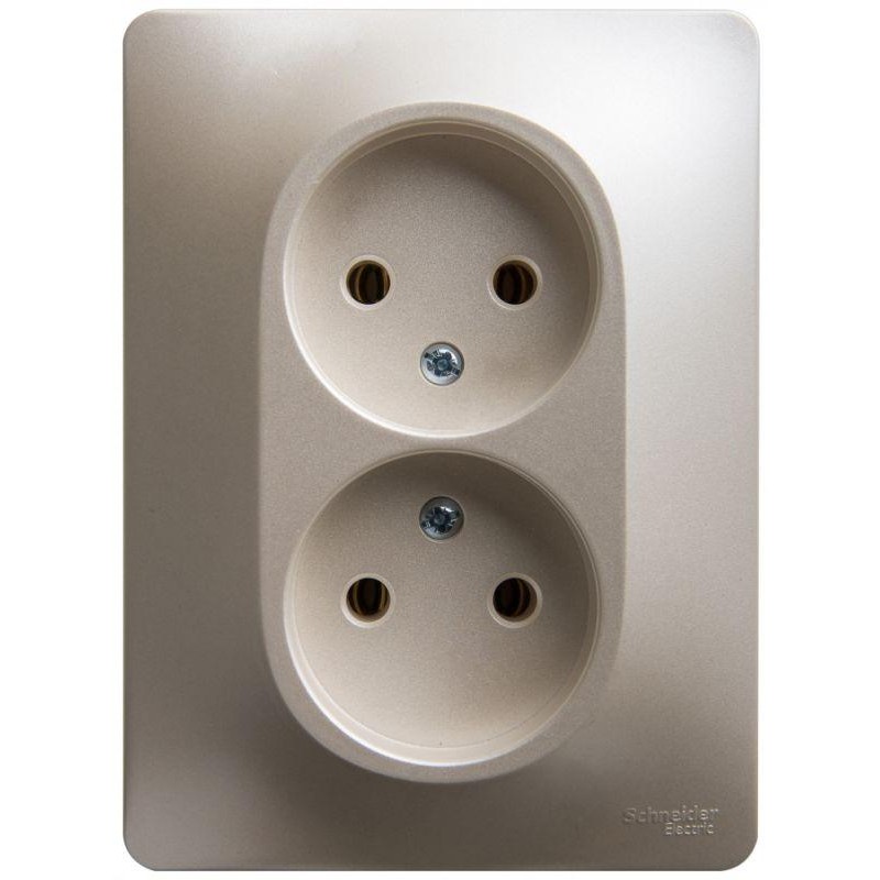 Розетка двойная Schneider Electric Glossa (в сборе, цвет перламутр) без заземления и без шторок подходит для сетей 250 В, на ток 16 А.